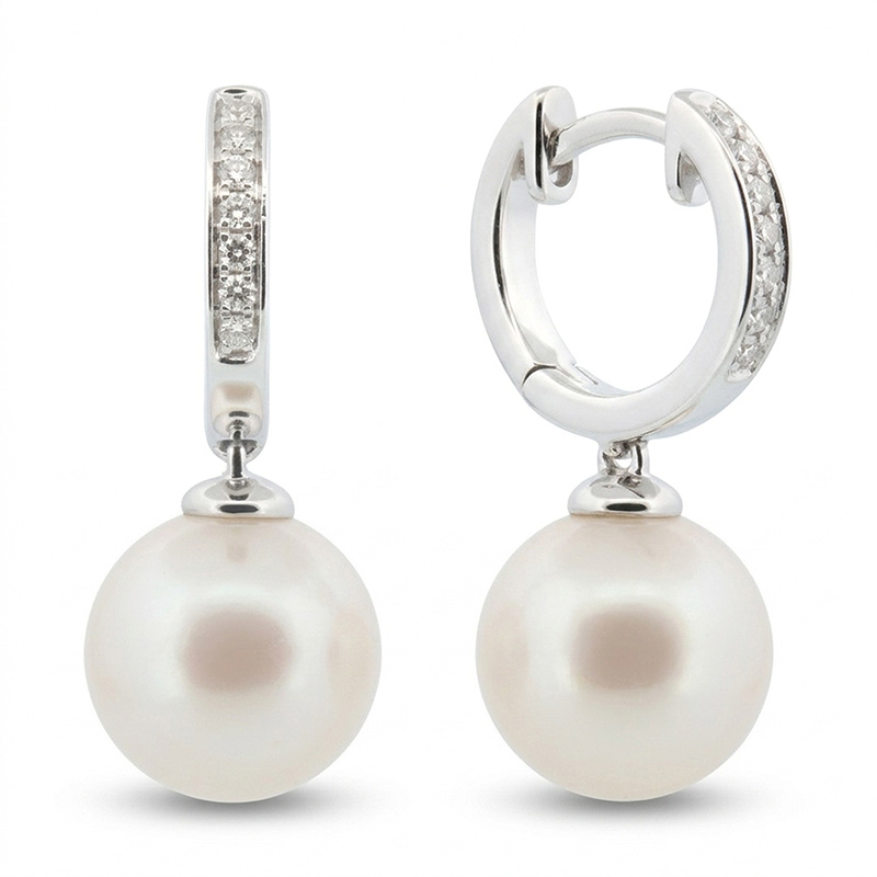 Briliantové náušnice z bieleho 18-karátového zlata s perlou