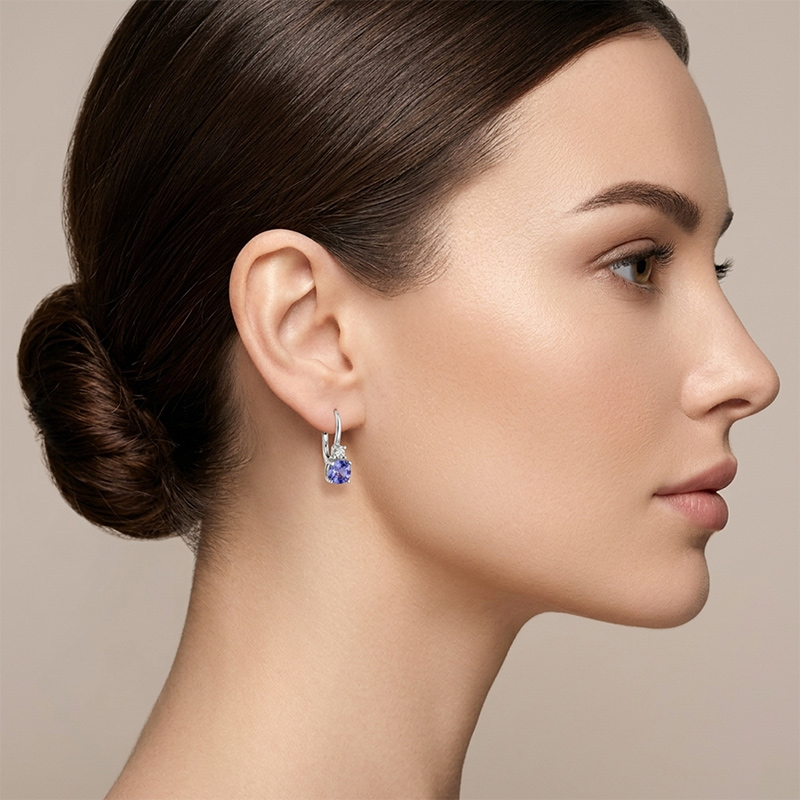 Briliantové náušnice z bieleho 14-karátového zlata s tanzanitom