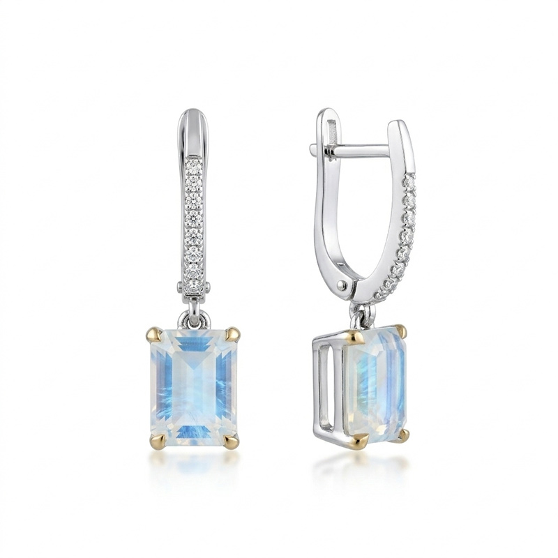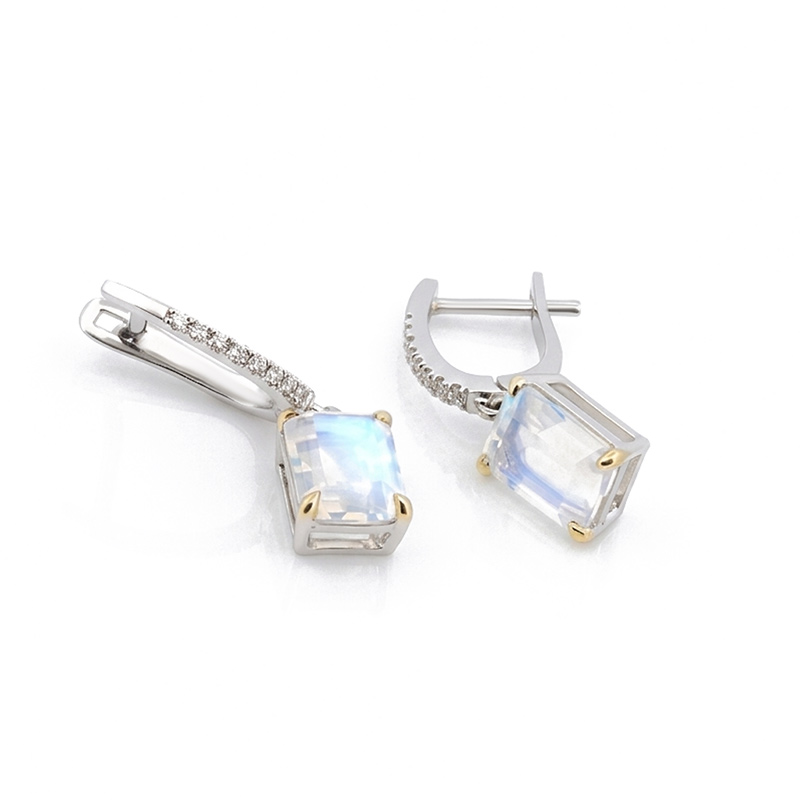 Briliantové náušnice z bieleho 14-karátového zlata so Slovenským ľadovým opálom