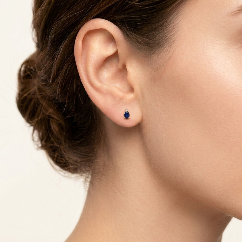 Briliantové náušnice zo žltého 14-karátového so zafírom