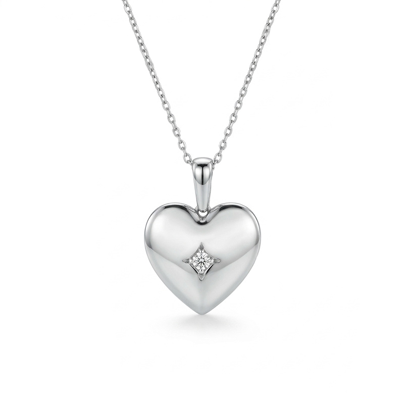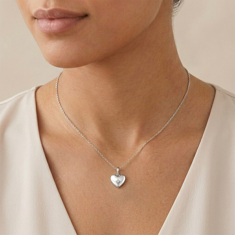 Briliantový náhrdelník srdiečko z bieleho 14-karátového zlata 45 cm