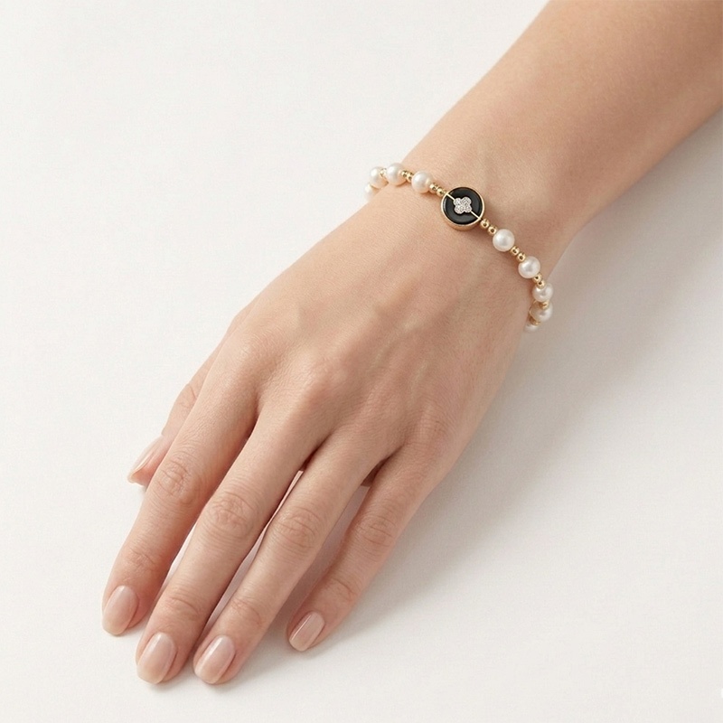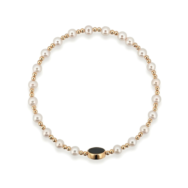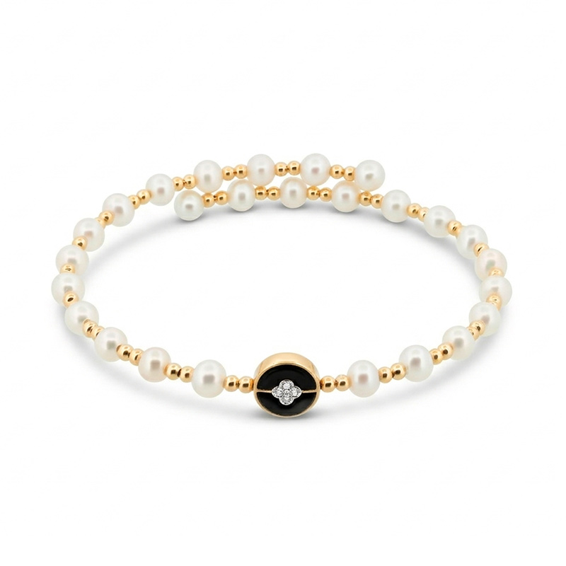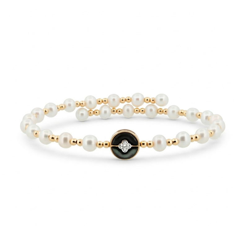 Náramok zo žltého 18-karátového zlata s perlami a perleťou