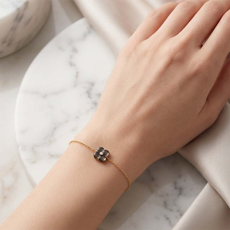 Briliantový náramok zo žltého 18-karátového zlata s perleťou