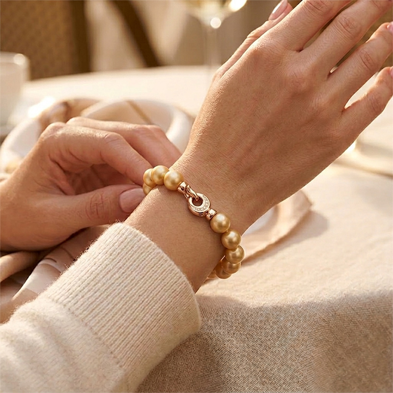 Briliantový perlový náramok zo žltého 14-karátového zlata