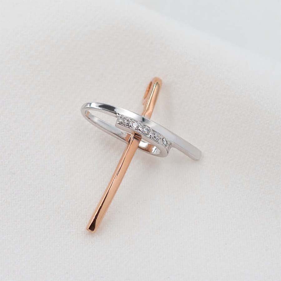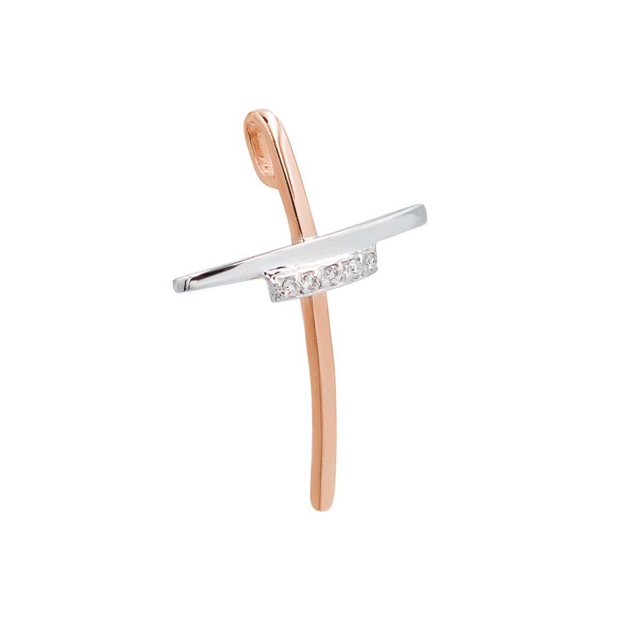 Briliantový prívesok krížik z ružového a bieleho 14-karátového zlata
