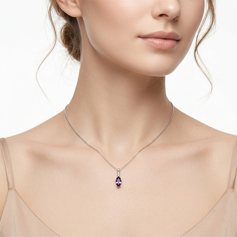Briliantový prívesok z bieleho 14-karátového zlata s ametystom