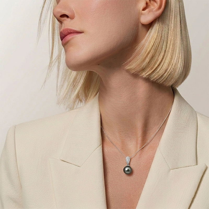 Briliantový prívesok z bieleho 18-karátového zlata s tahitskou perlou