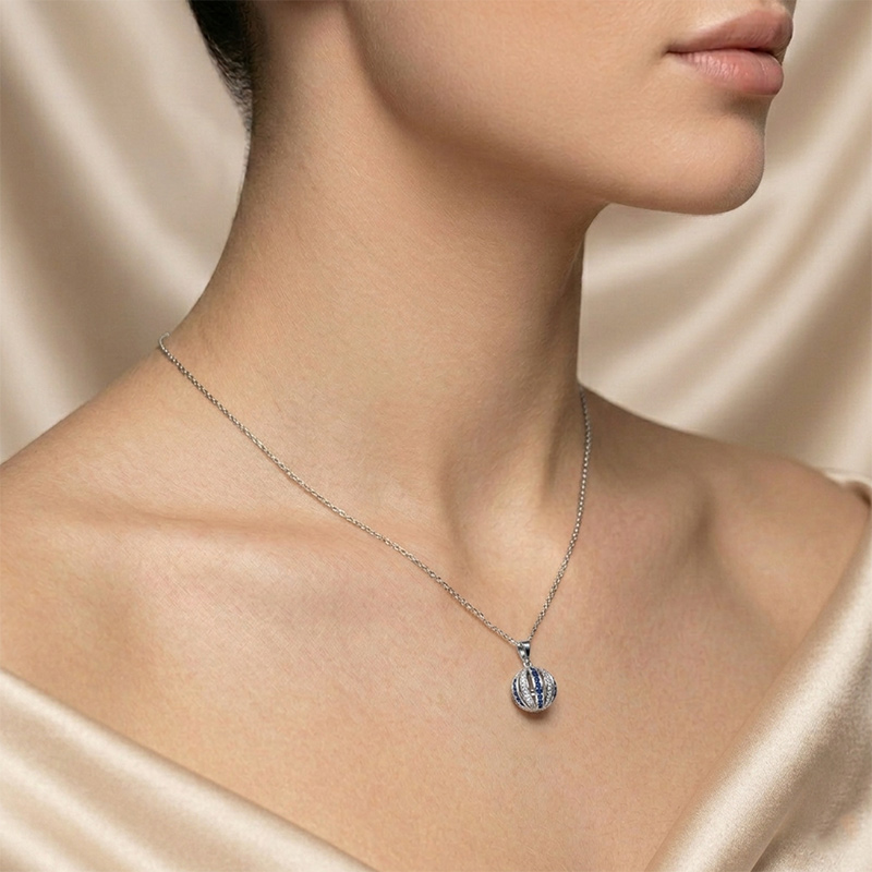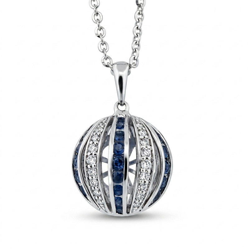 Briliantový prívesok z bieleho 14-karátového zlata so zafírom