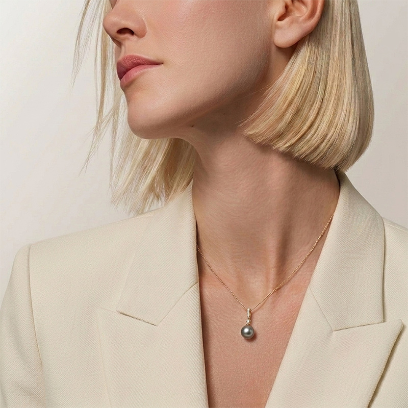 - Kamene: 7 ks briliantov, spolu 0,16 ct, farba TW (vzácna biela), čistota si, 1 ks Tahitská perla, farba tmavá, priemer 11 mm