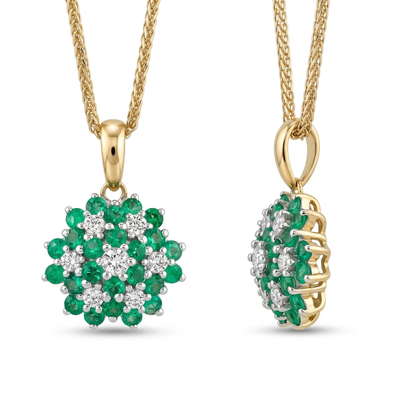 - Kamene: 0,035 ct brilianty + smaragd