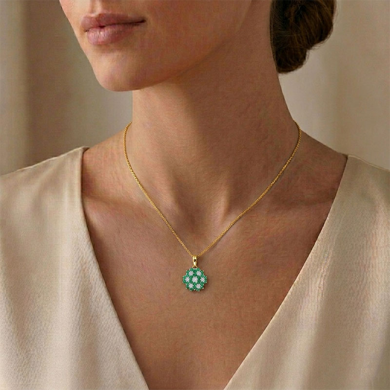 Briliantový prívesok zo žltého 14-karátového zlata so smaragdom