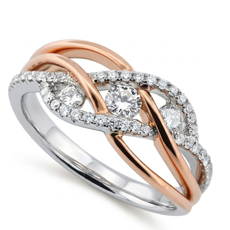Briliantový prsteň z bieleho a ružového 14-karátového zlata