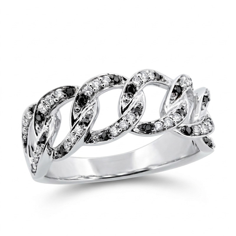 Briliantový prsteň z bieleho 14-karátového zlata s čiernymi briliantmi