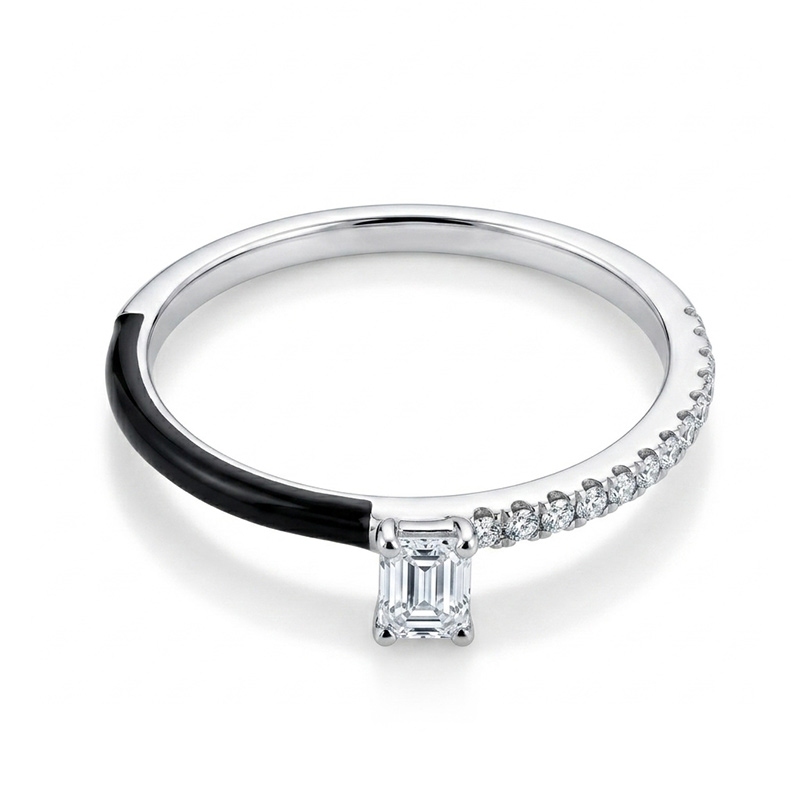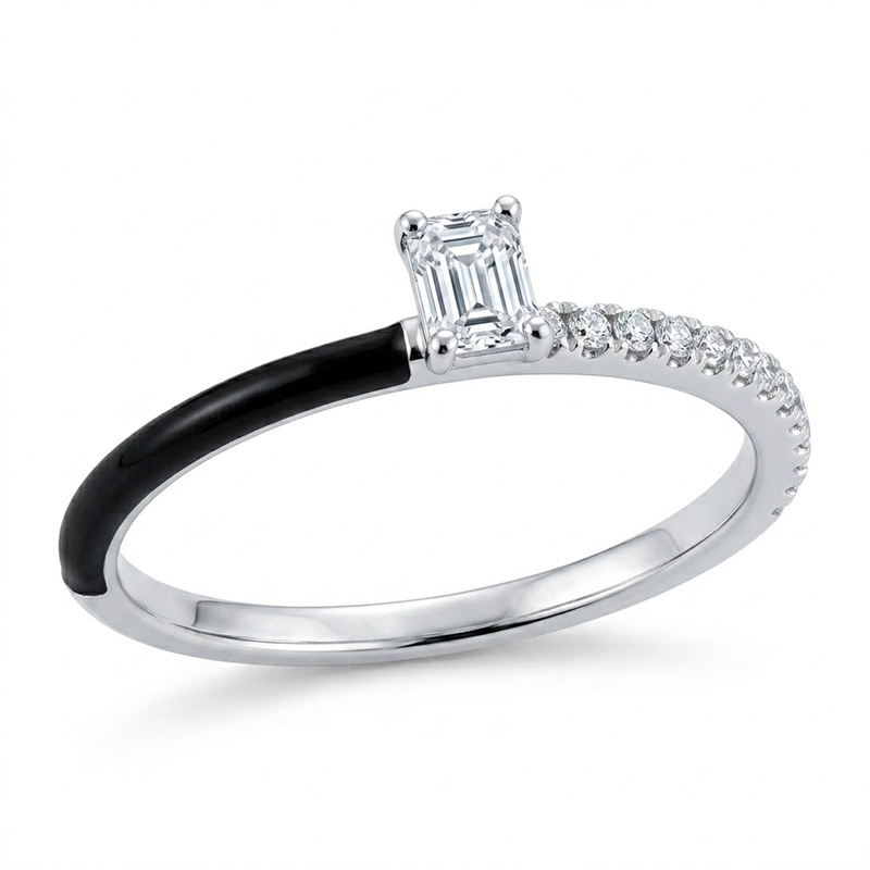 Briliantový prsteň z bieleho 18-karátového zlata s emailom