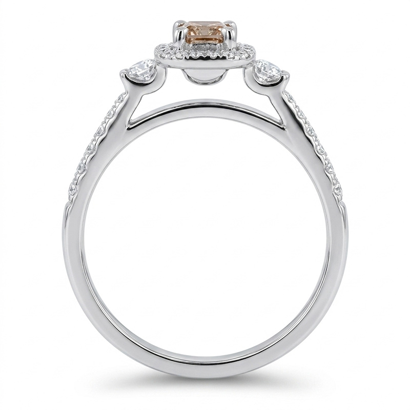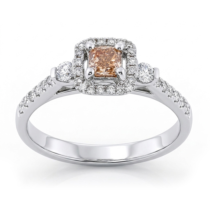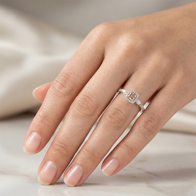 Briliantový prsteň z bieleho 18-karátového zlata s hnedým briliantom