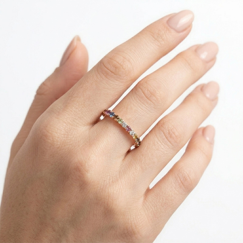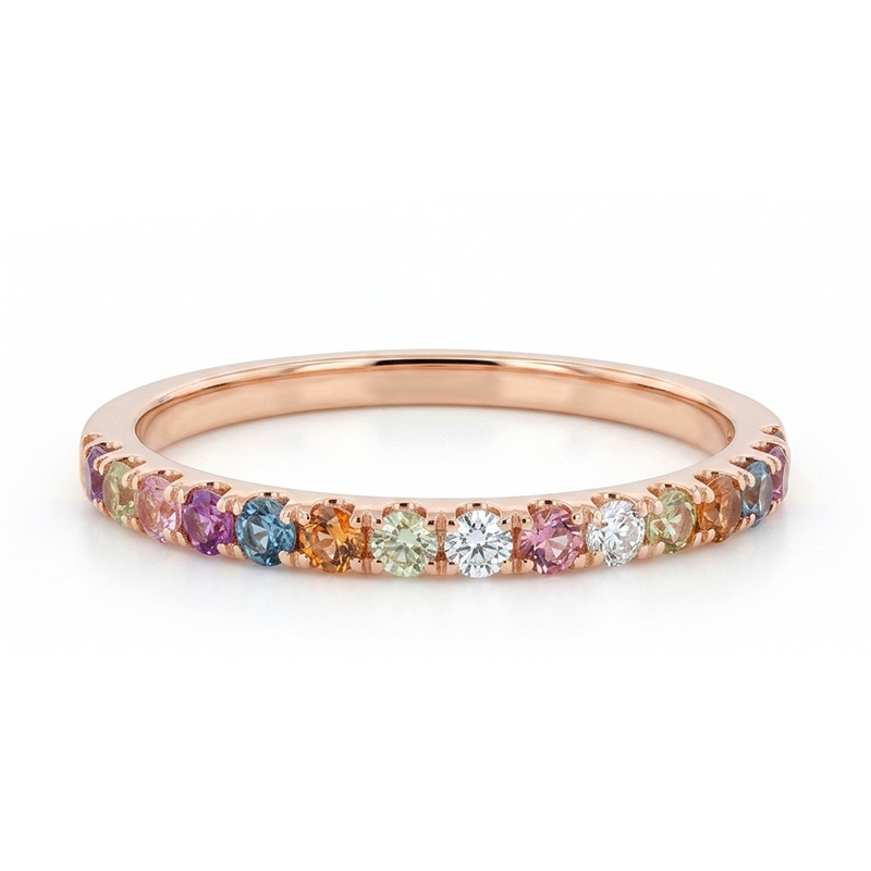 Briliantový prsteň z ružového 18-karátového zlata s farebnými zafírmi