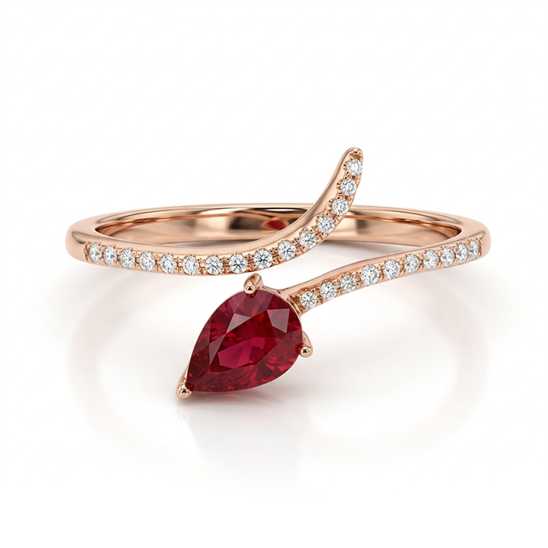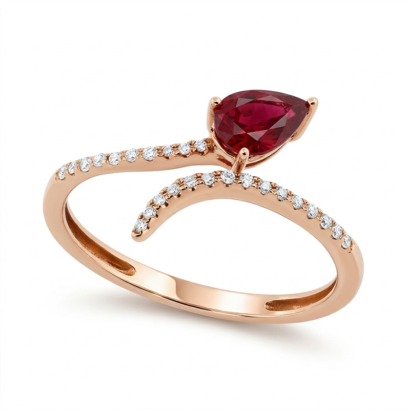 Briliantový prsteň z ružového 18-karátového zlata s rubínom