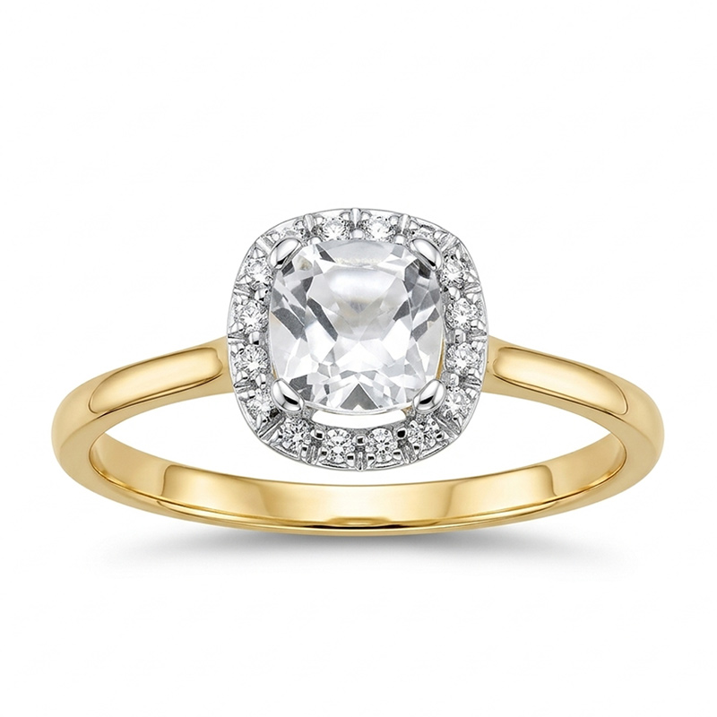 Briliantový prsteň zo žltého 14-karátového zlata s bielym topásom