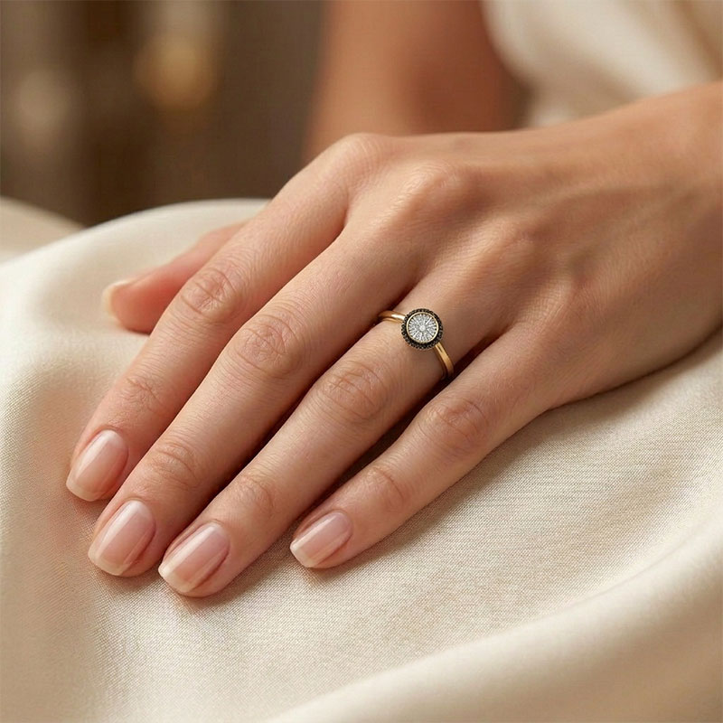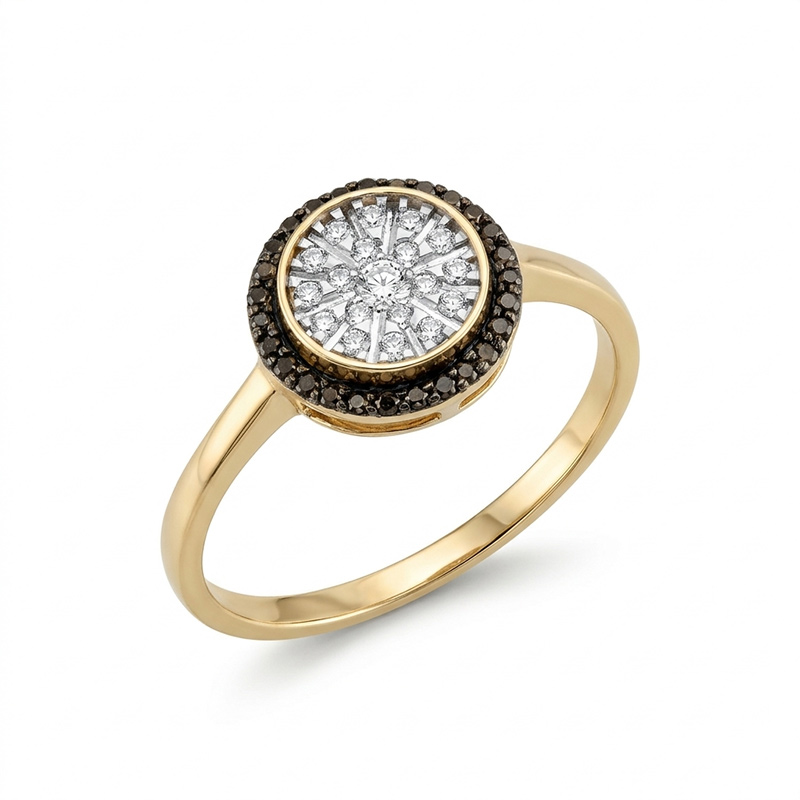 Briliantový prsteň zo žltého 14-karátového zlata s čiernymi briliantmi