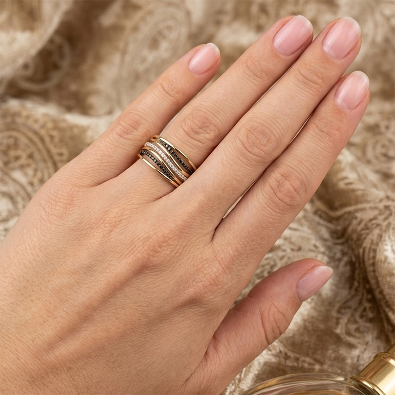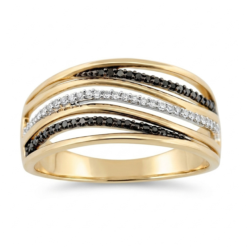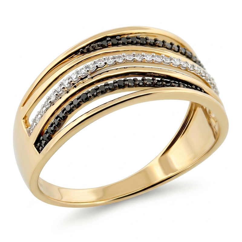 Briliantový prsteň zo žltého 14-karátového zlata s čiernymi briliantmi