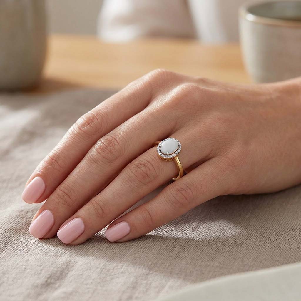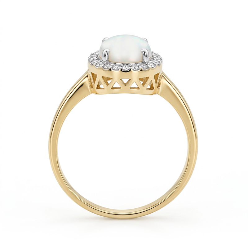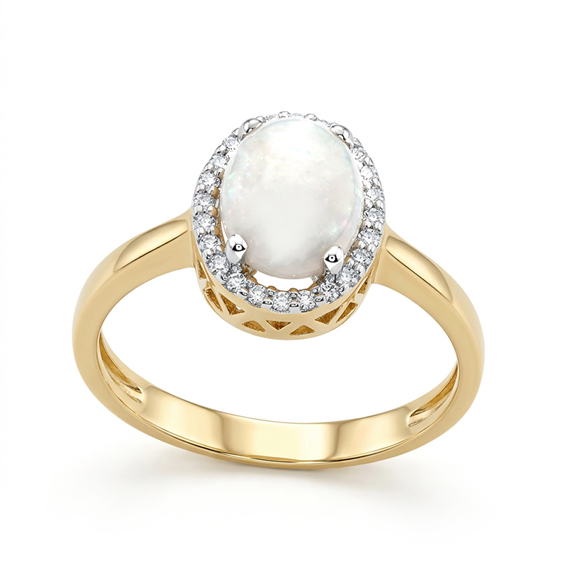Briliantový prsteň zo žltého 14-karátového zlata s mliečnym opálom