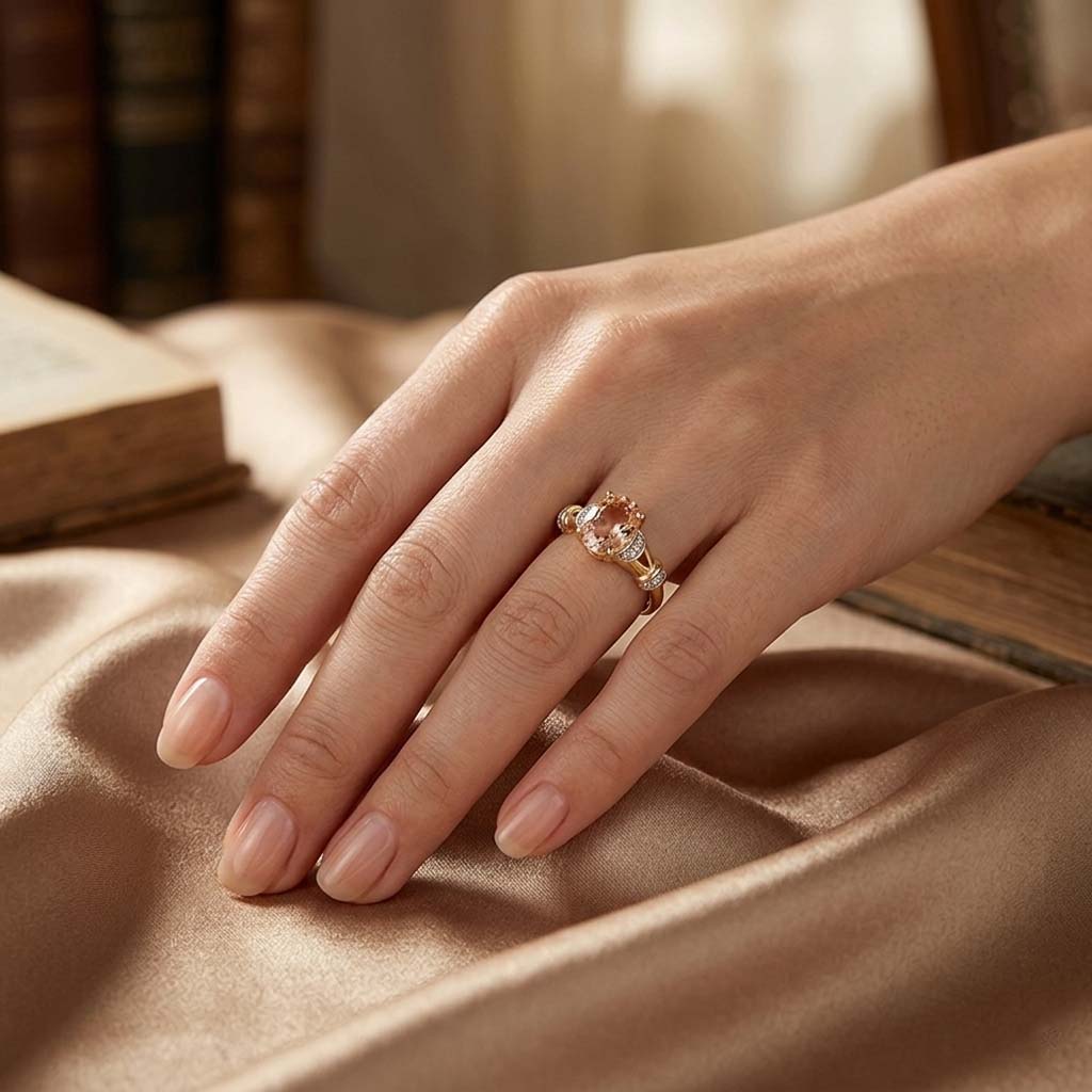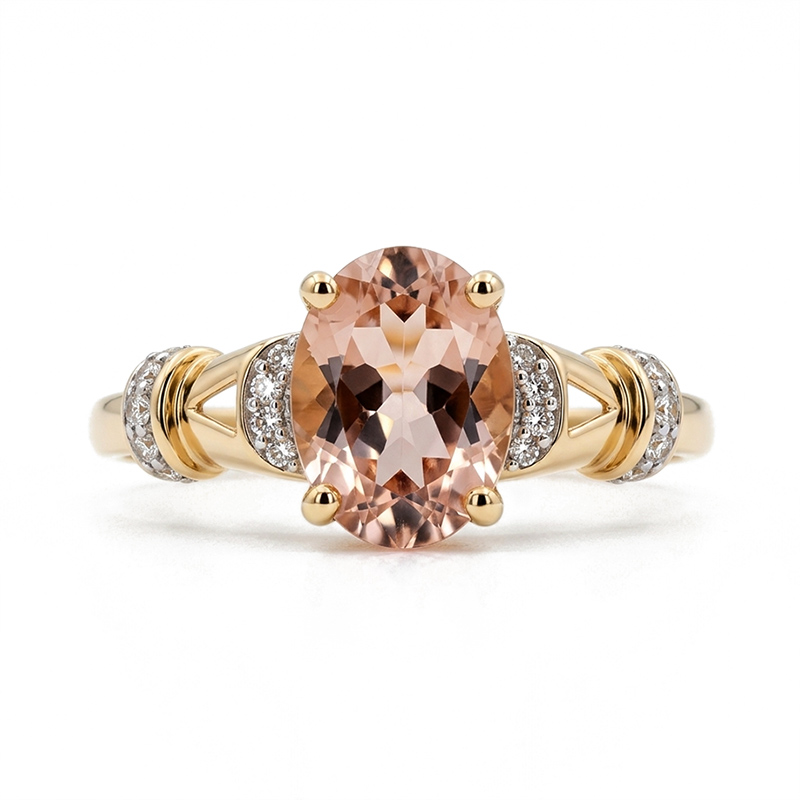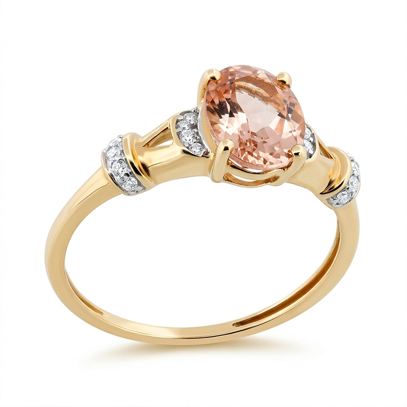Briliantový prsteň zo žltého 14-karátového zlata s morganitom