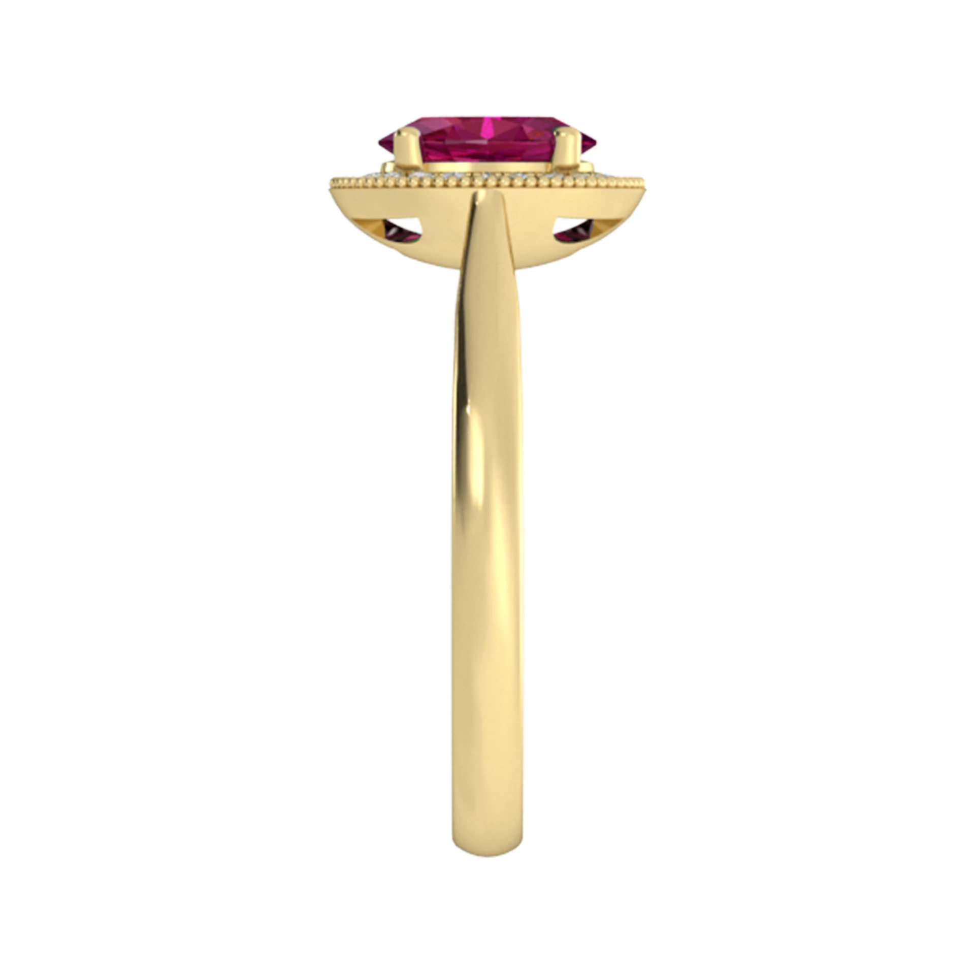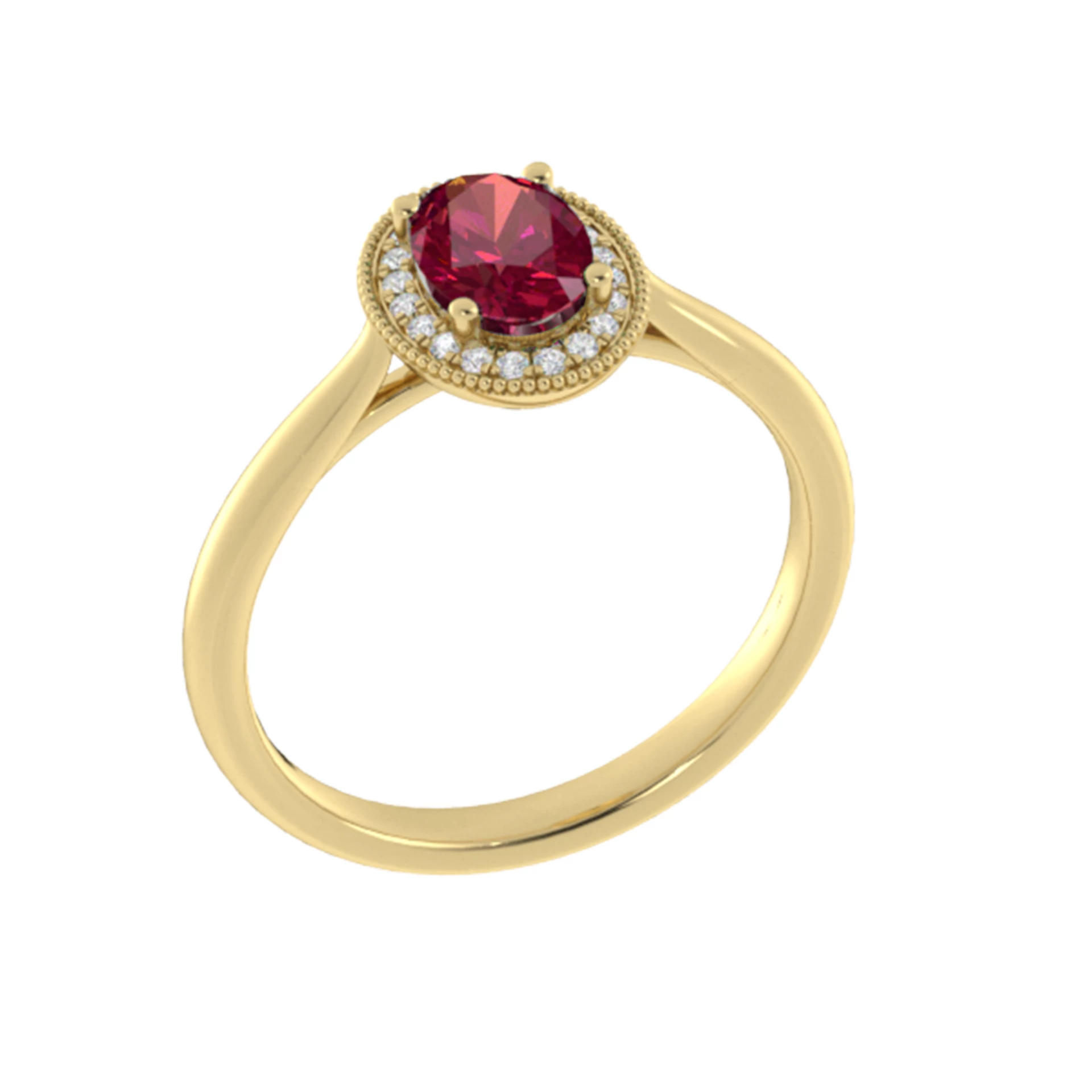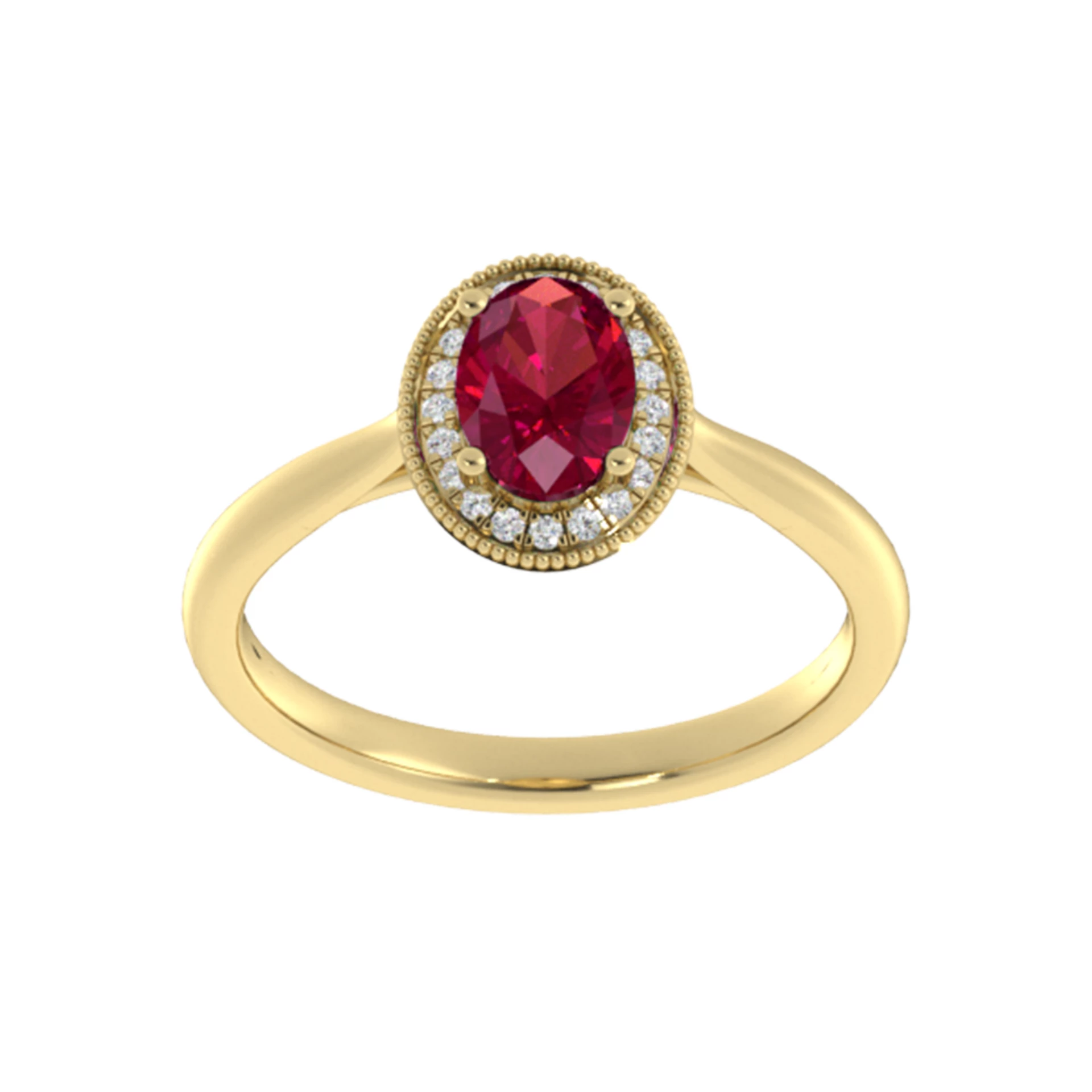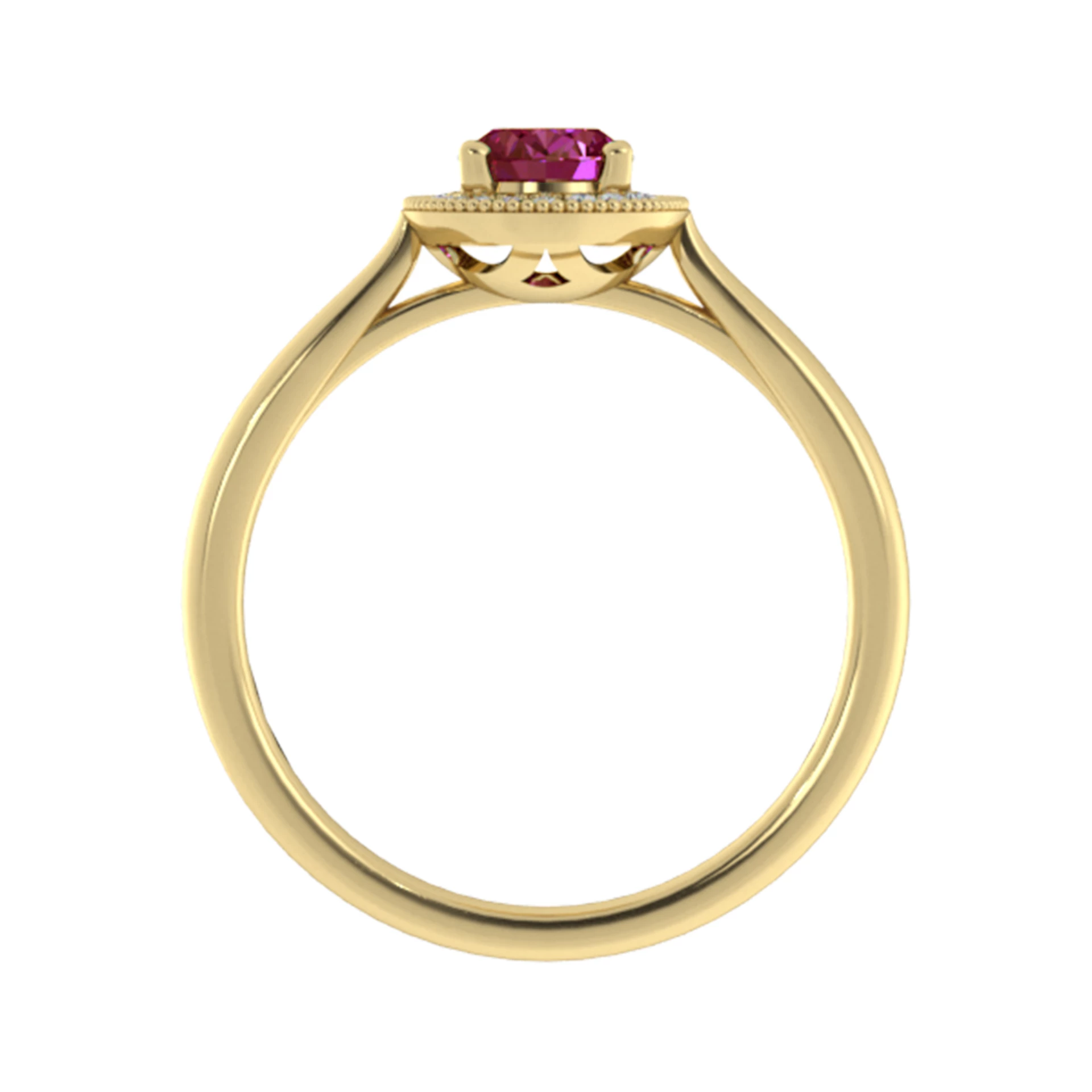 Briliantový prsteň zo žltého 14-karátového zlata s rubínom