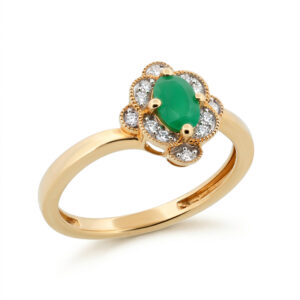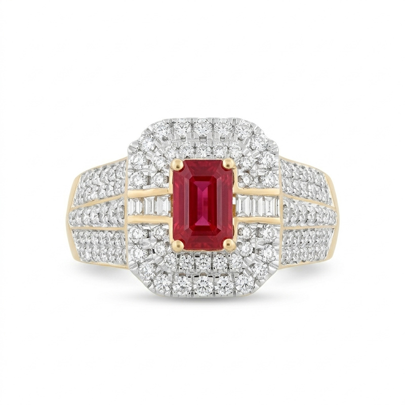 Briliantový prsteň zo žltého 14-karátového zlata s rubínom