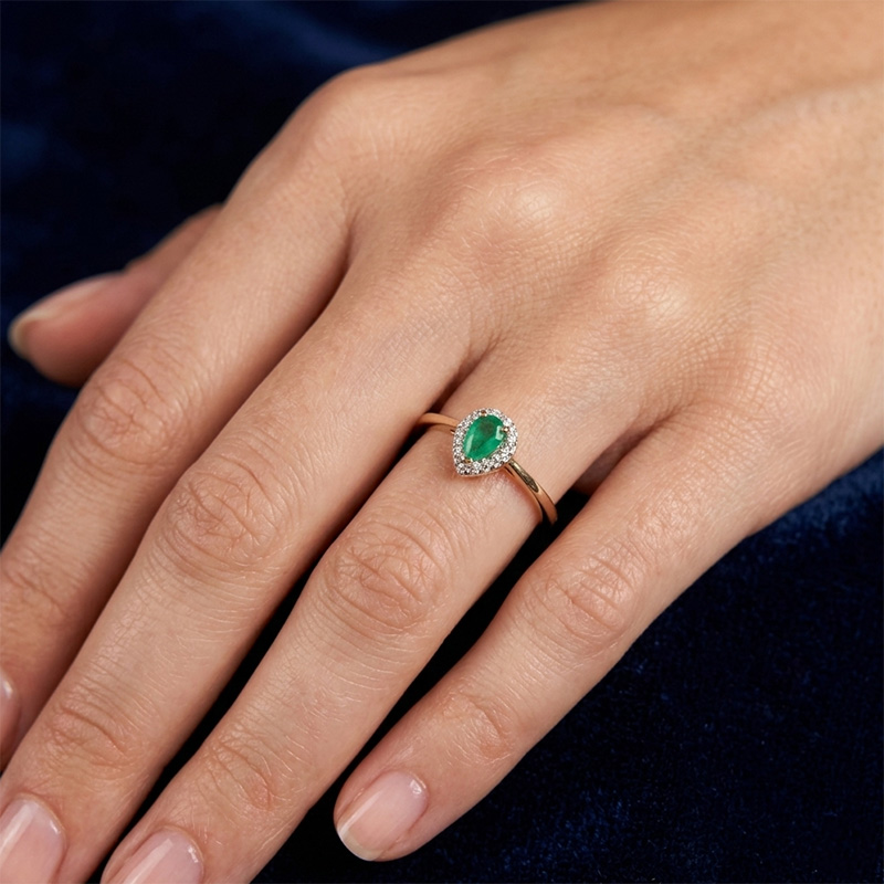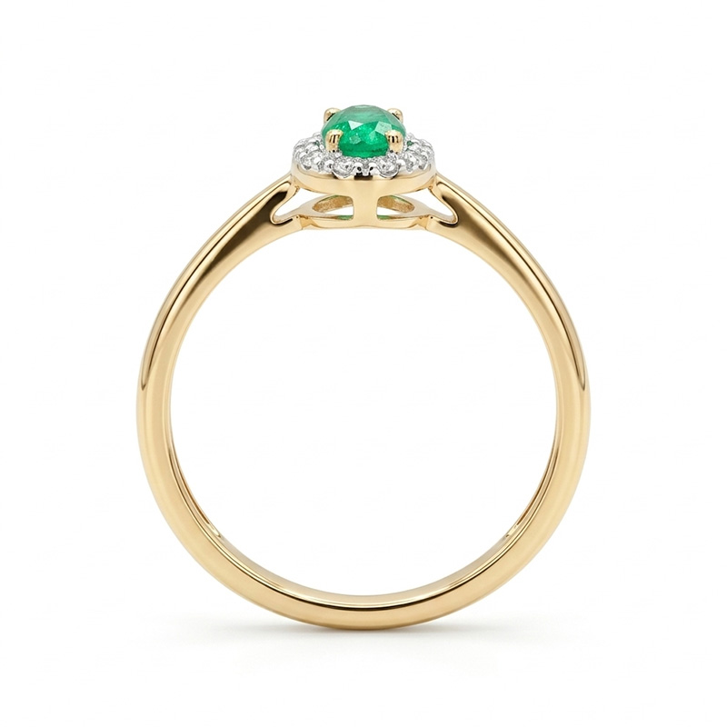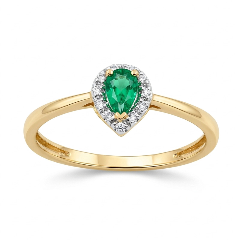 Briliantový prsteň zo žltého 14-karátového zlata so smaragdom
