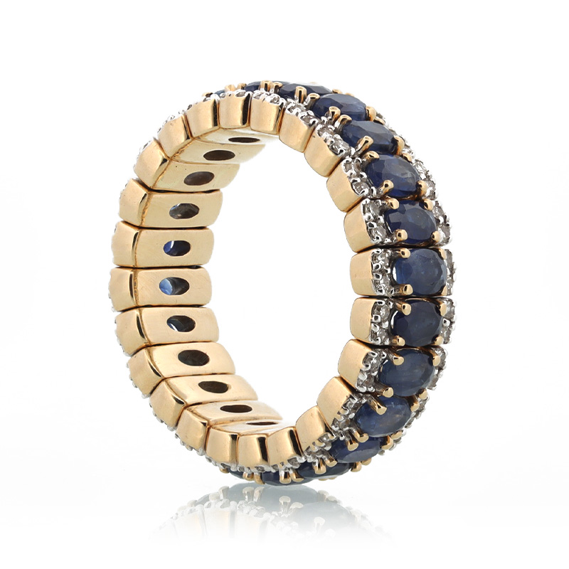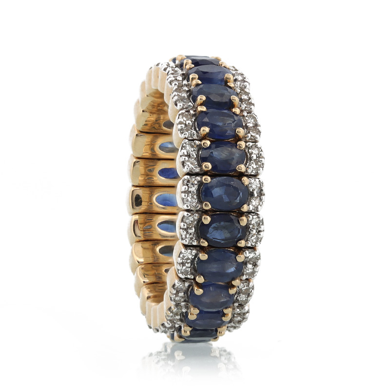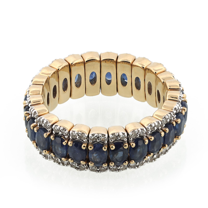 Flexibilný briliantový prsteň zo žltého 14-karátového zlata so zafírmi