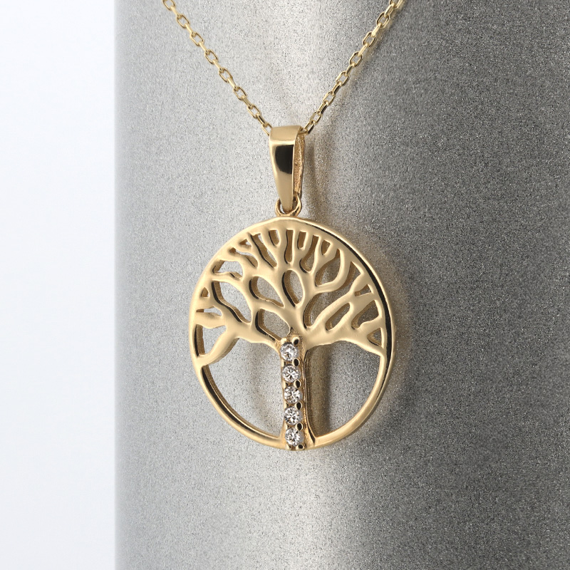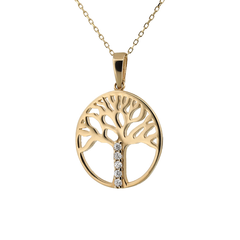 Náhrdelník strom života zo žltého 14-karátového zlata so zirkónom