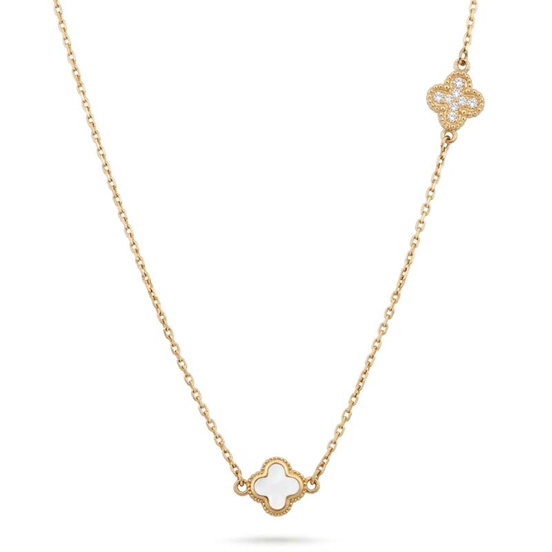 Náhrdelník štvorlístok zo žltého 14-karátového zlata so zirkónom