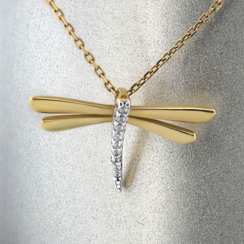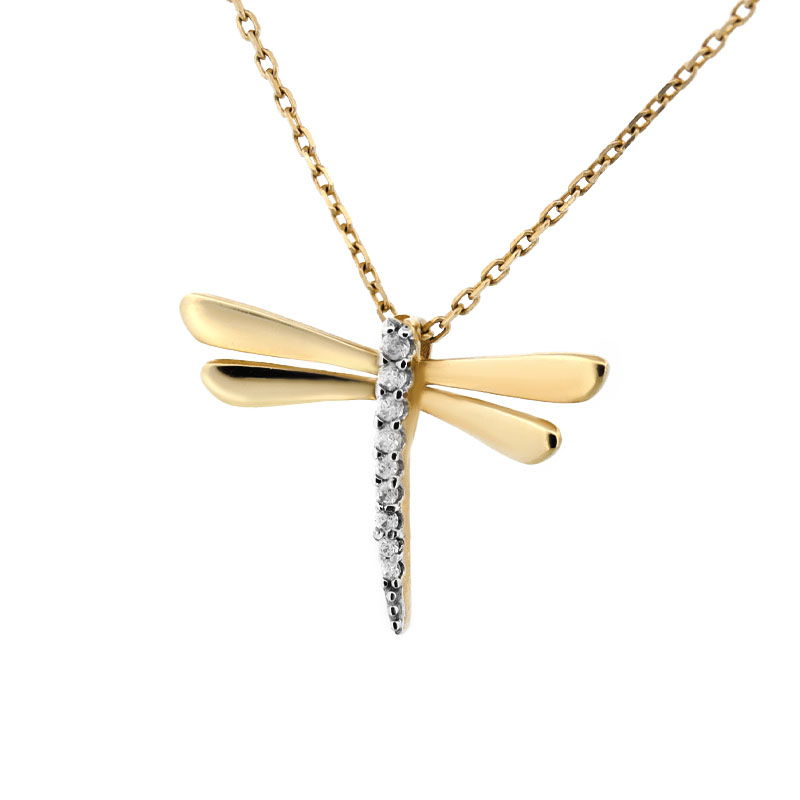 Náhrdelník vážka zo žltého 14-karátového zlata so zirkónmi