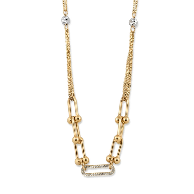 Náhrdelník z bieleho a žltého 14-karátového zlata so zirkónom