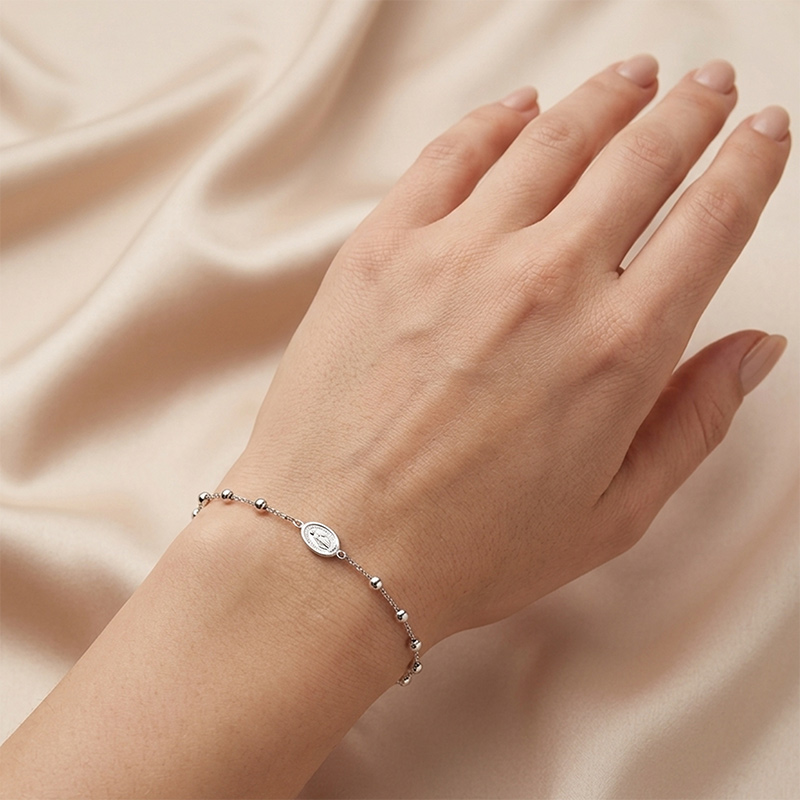 Náramok ruženec z bieleho 14-karátového zlata 18-20 cm