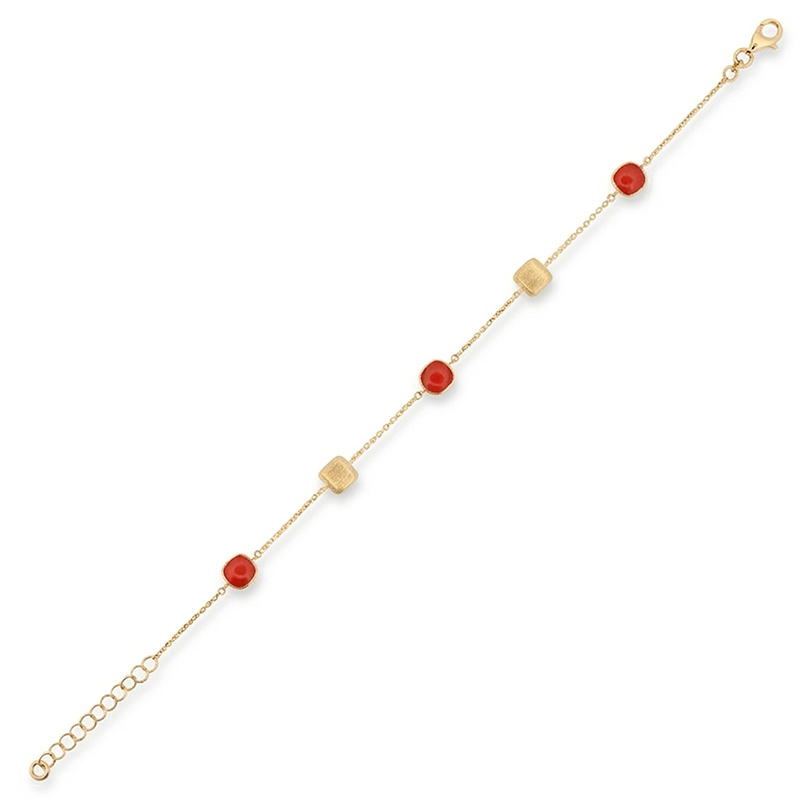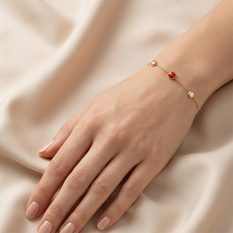 Náramok zo žltého 14-karátového zlata s pravým korálom