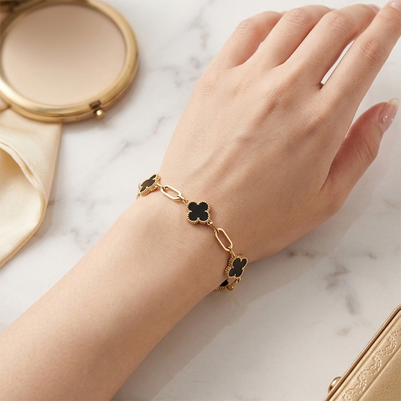 Náramok zo žltého 14-karátového zlata s ónyxom