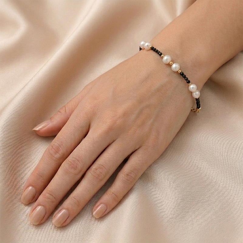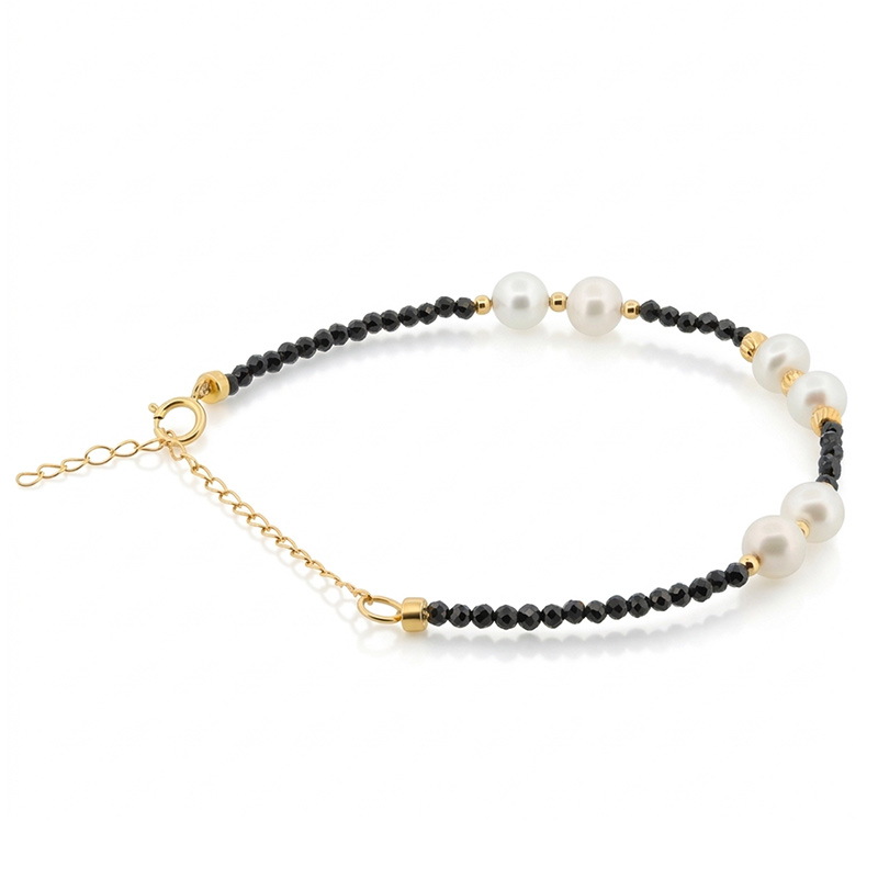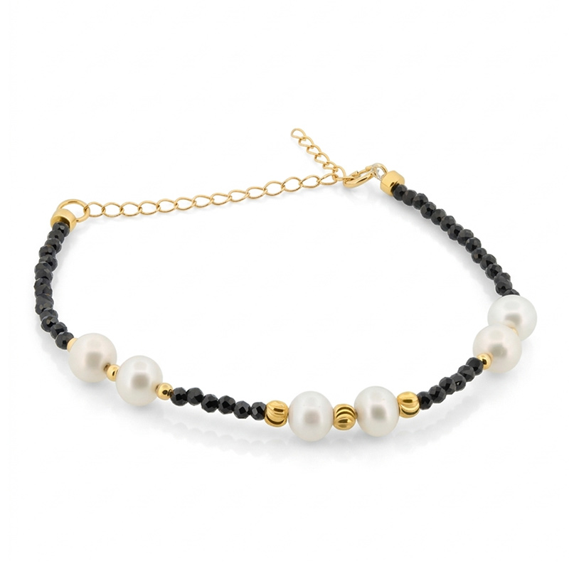 Náramok zo žltého 18-karátového zlata s perlami a spinelom