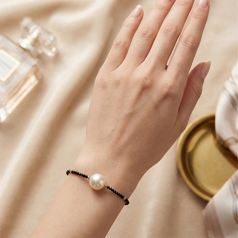 Náramok zo žltého 18-karátového zlata s perlami a spinelom