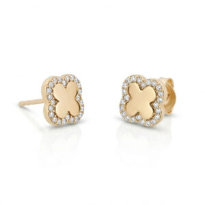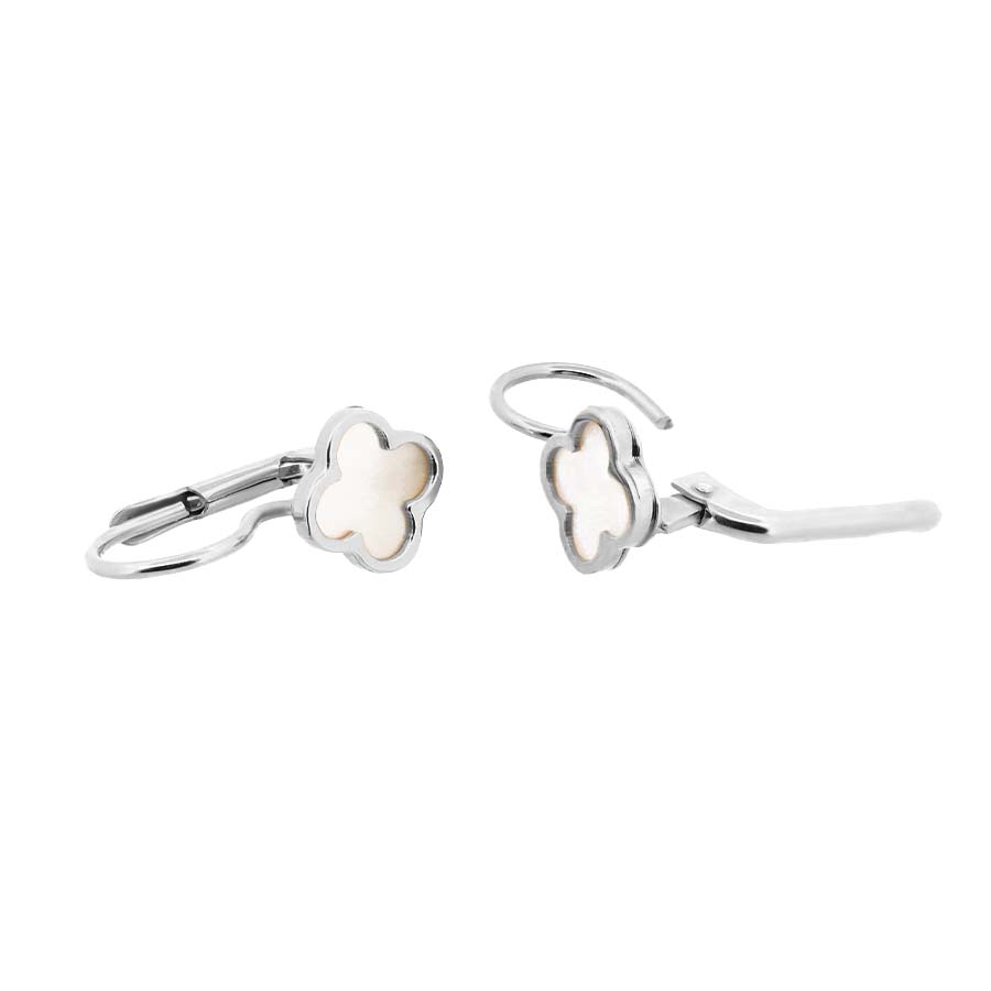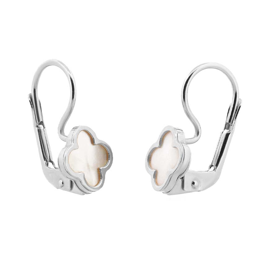 Náušnice štvorlístok z bieleho 14-karátového zlata s perleťou
