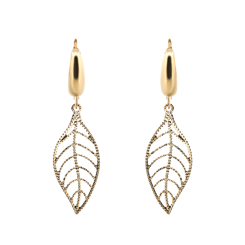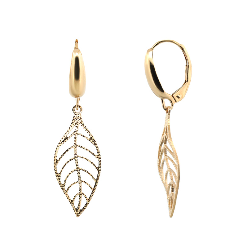 Náušnice listy zo žltého 14-karátového zlata