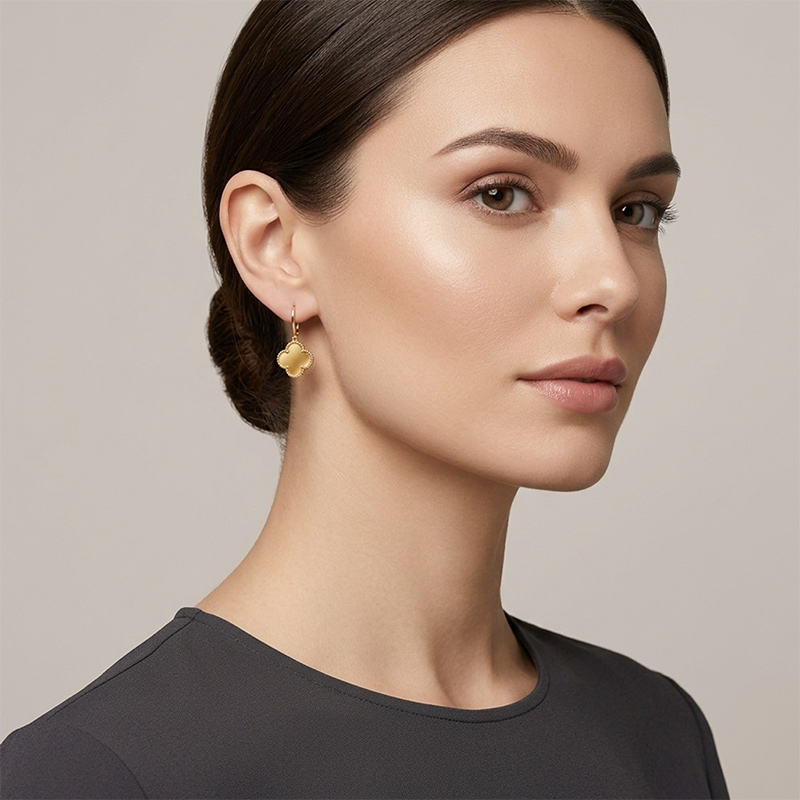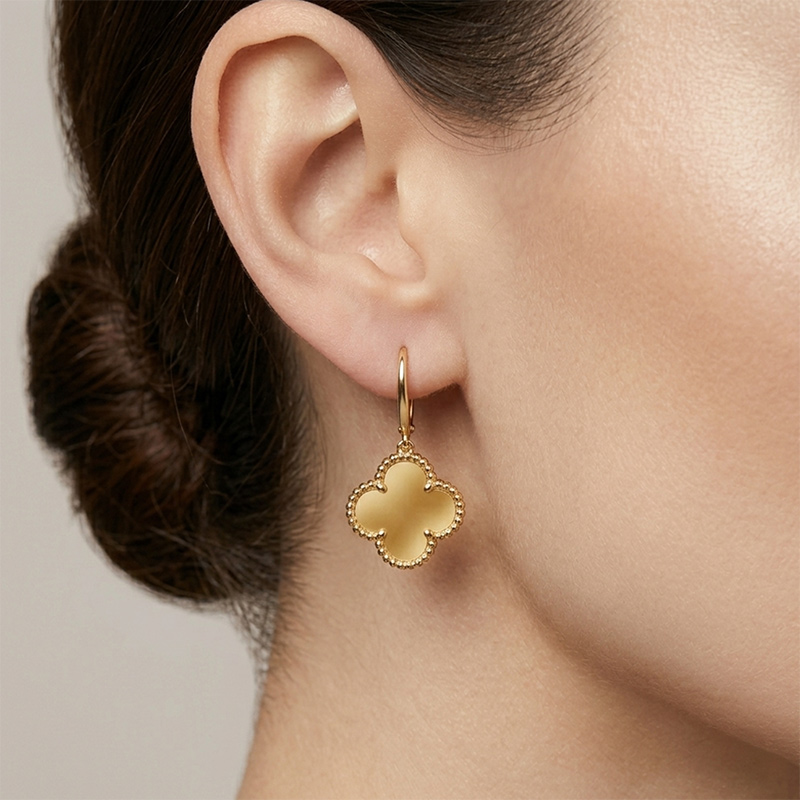 Náušnice štvorlístky zo žltého 14-karátového zlata