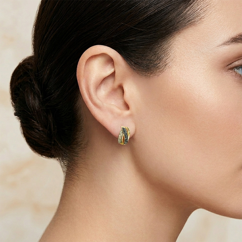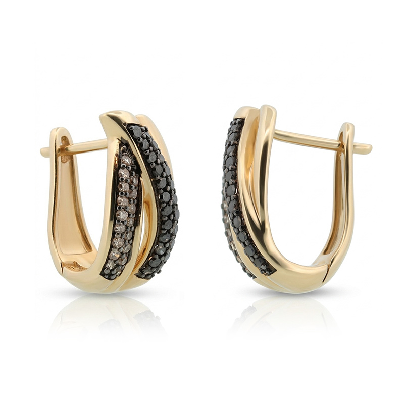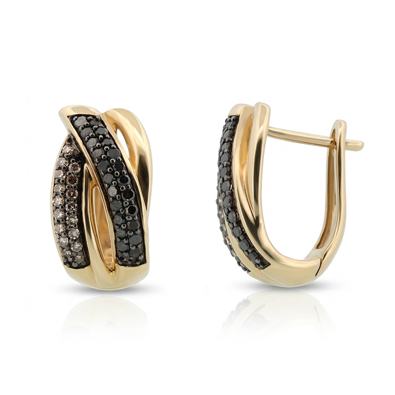 Náušnice zo žltého 14-karátového zlata s hnedými a čiernymi briliantmi