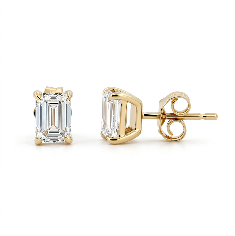Náušnice zo žltého 14-karátového zlata s laboratórnymi briliantmi