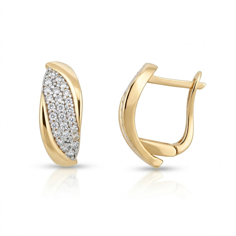 Náušnice zo žltého 14-karátového zlata so zirkónmi