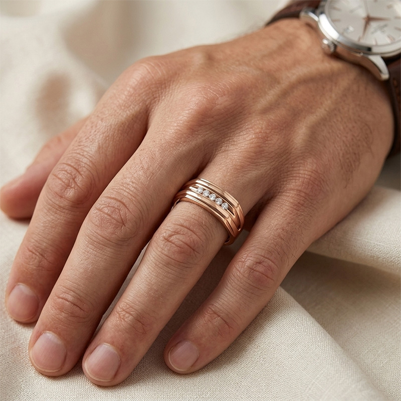 Pánsky briliantový prsteň z ružového 14-karátového zlata