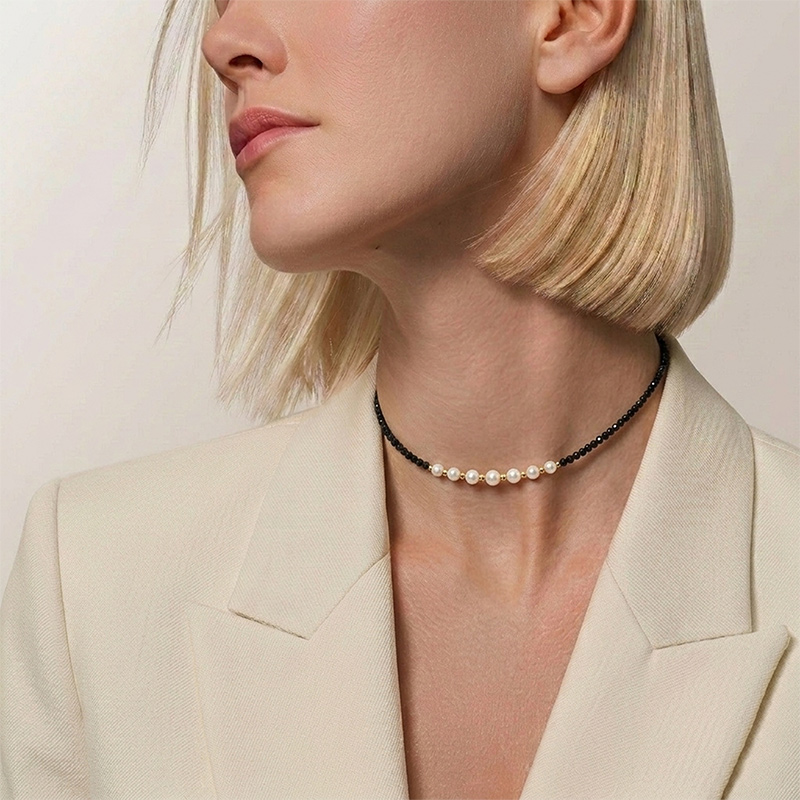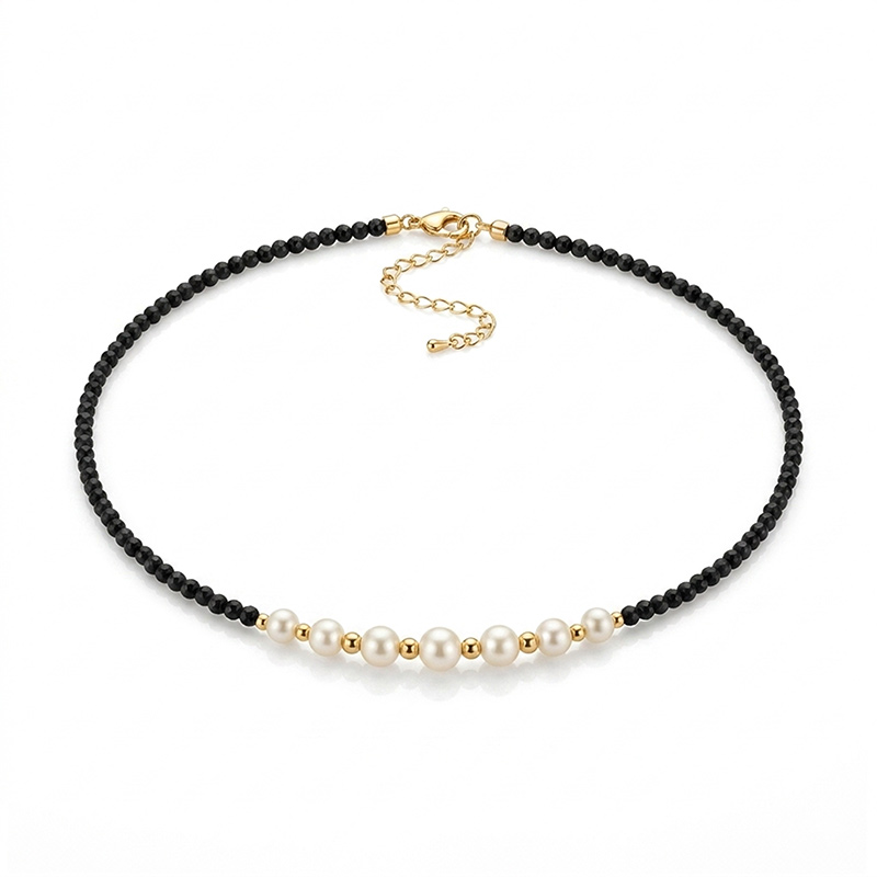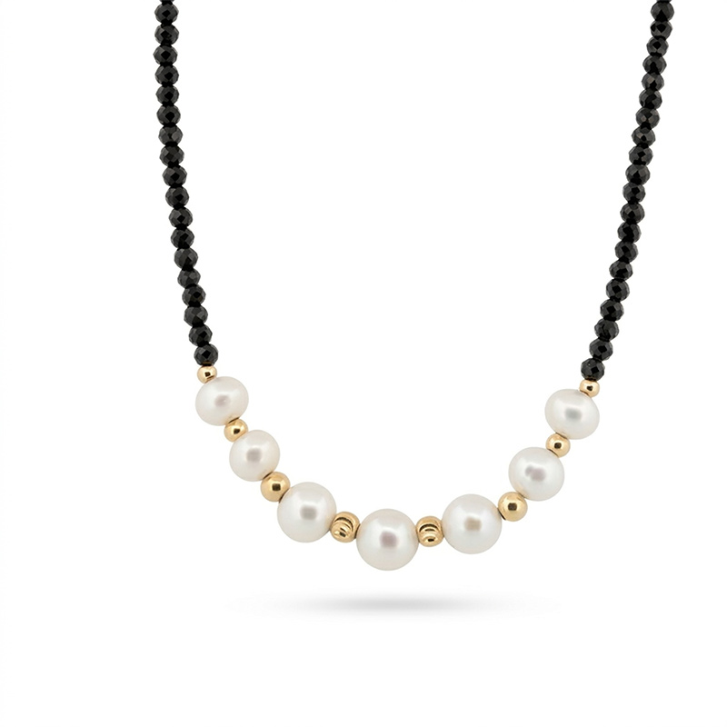 Perlový náhrdelník zo žltého 18-karátového zlata so spinelom 40 cm