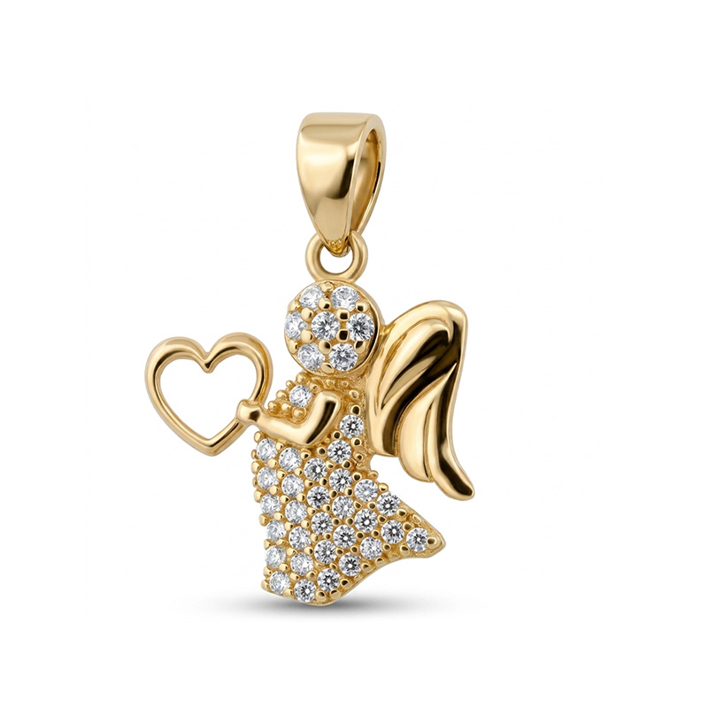 Prívesok anjel zo žltého 14-karátového zlata so zirkónmi