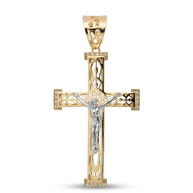 Prívesok krížik zo žltého a bieleho 14-karátového zlata