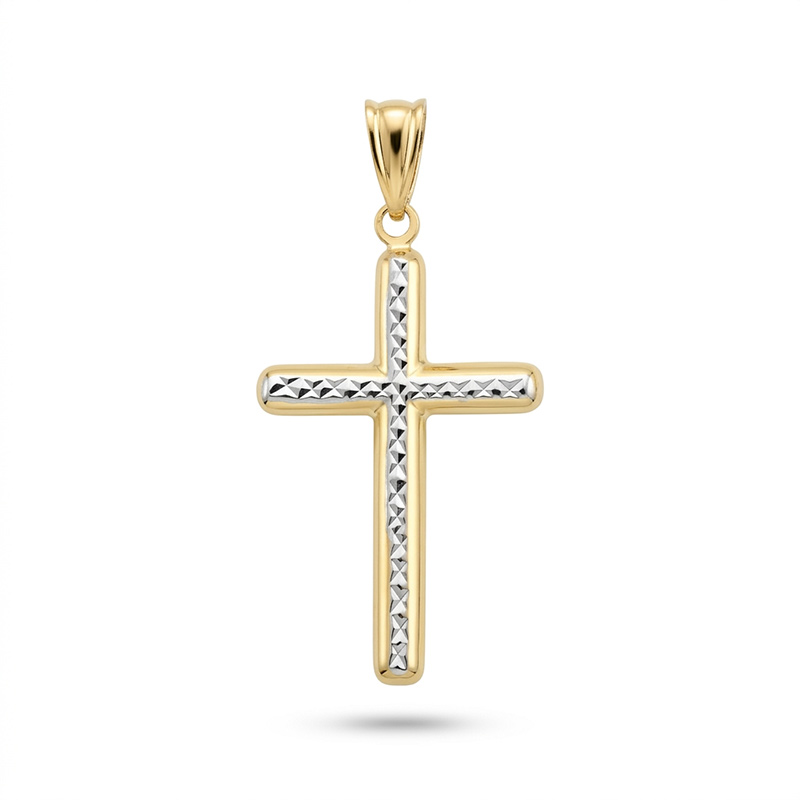 Prívesok krížik zo žltého a bieleho 14-karátového zlata